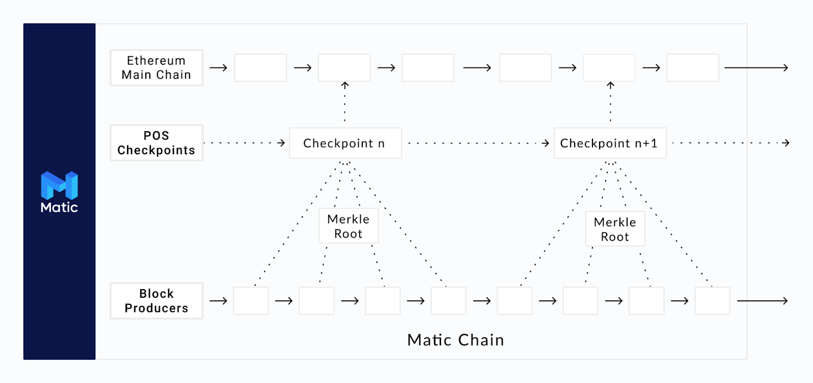 ملاحظة: من الناحية الفنية، Matic ليس سلسلة جانبية لأنه يلتزم بشكل دوري بحالة السلسلة الجانبية إلى Ethereum. ومن ثم، فإنهم يحبون أن يطلقوا على أنفسهم "سلسلة الالتزام".