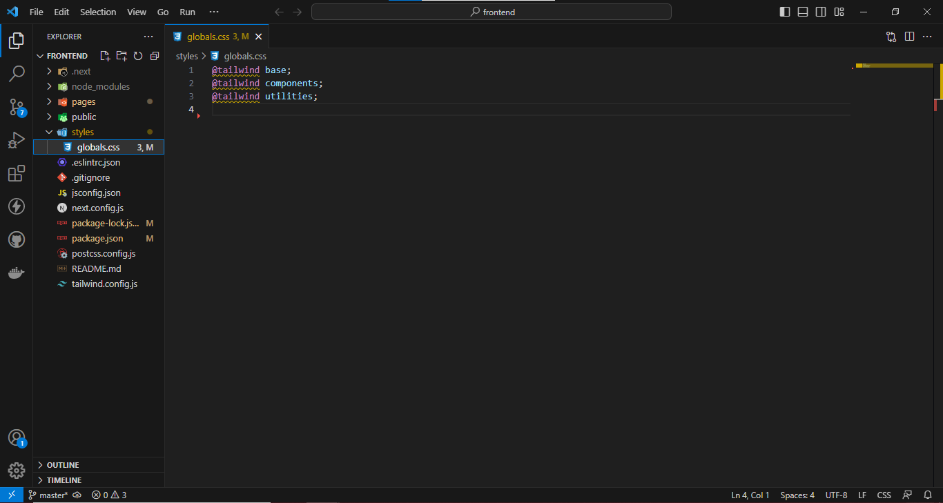 ستذهب الى مجلد styles وستقوم بفتح الملف globals.css وستبقي هذه الاوامر في الملف