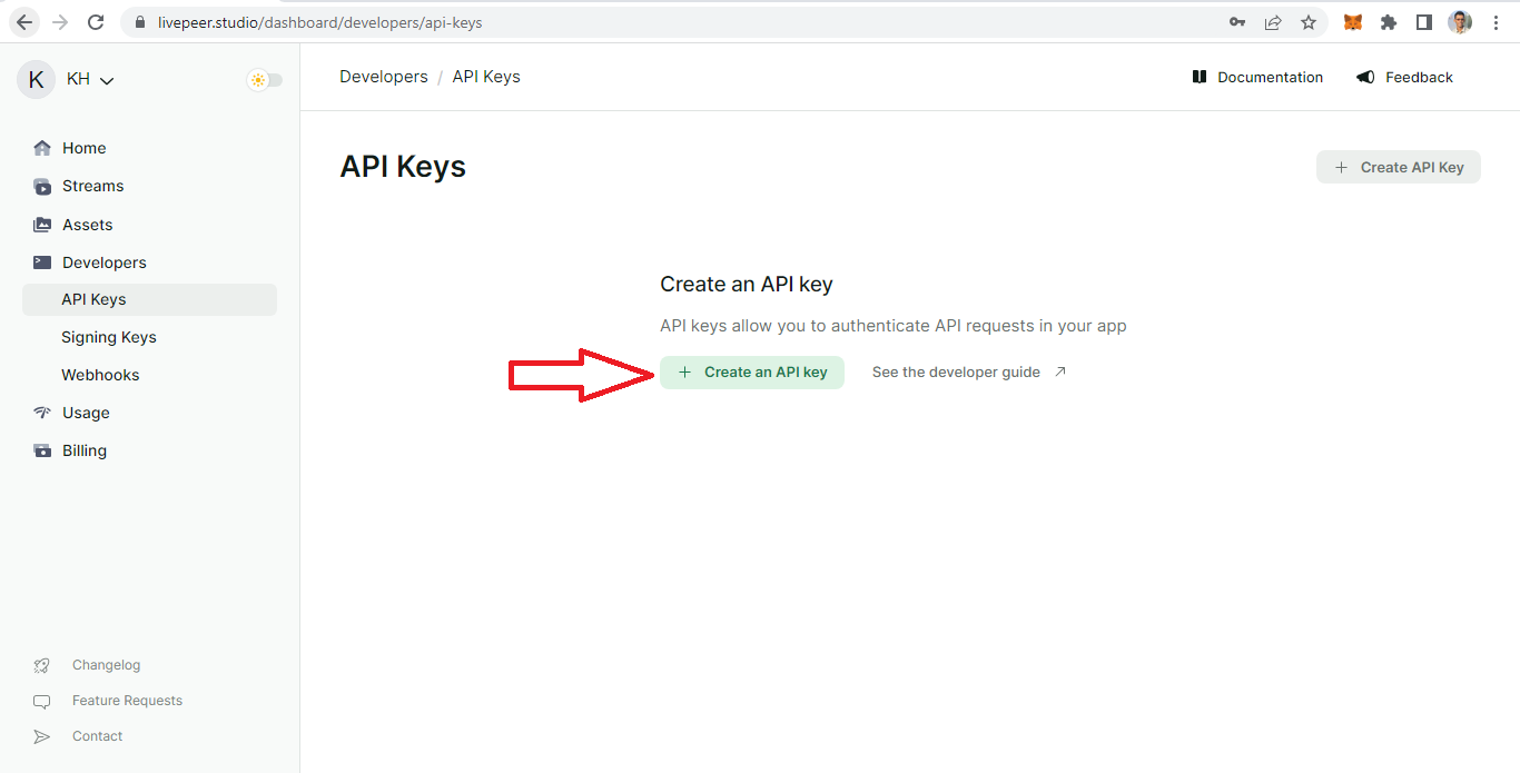 بمجرد إنشاء حساب، في لوحة التحكم، انقر فوق Developers في الشريط الجانبي.