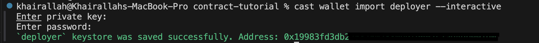 سنقوم الان بإضافة معلومات محفظتك في جهازك عن طريق المفتاح الخاص (Private Key) الذي قمت بنسخه عن طريق تشغيل هذا الأمر: